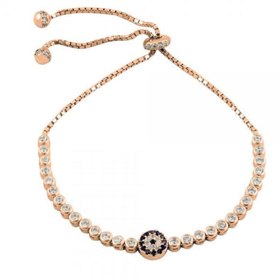Evil Eye & CZ Adjustable Sliding Bracelet In Sterling Silver - Zehrai