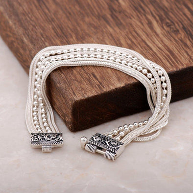 Hand knitted Trabzon straw bracelet in sterling silver - Zehrai