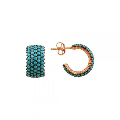 Rose gold plated turquoise eternity earrings in sterling silver - Zehrai