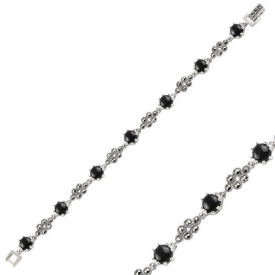 Adjustable Marcasite Flower Bracelet in Sterling Silver - Zehrai