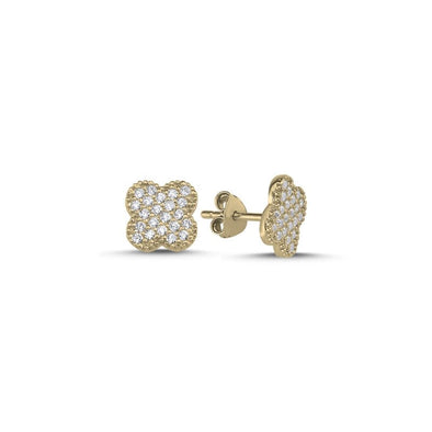 Four Leaf Clover Quatrefoil Stud Earrings In Sterling Silver - Zehrai